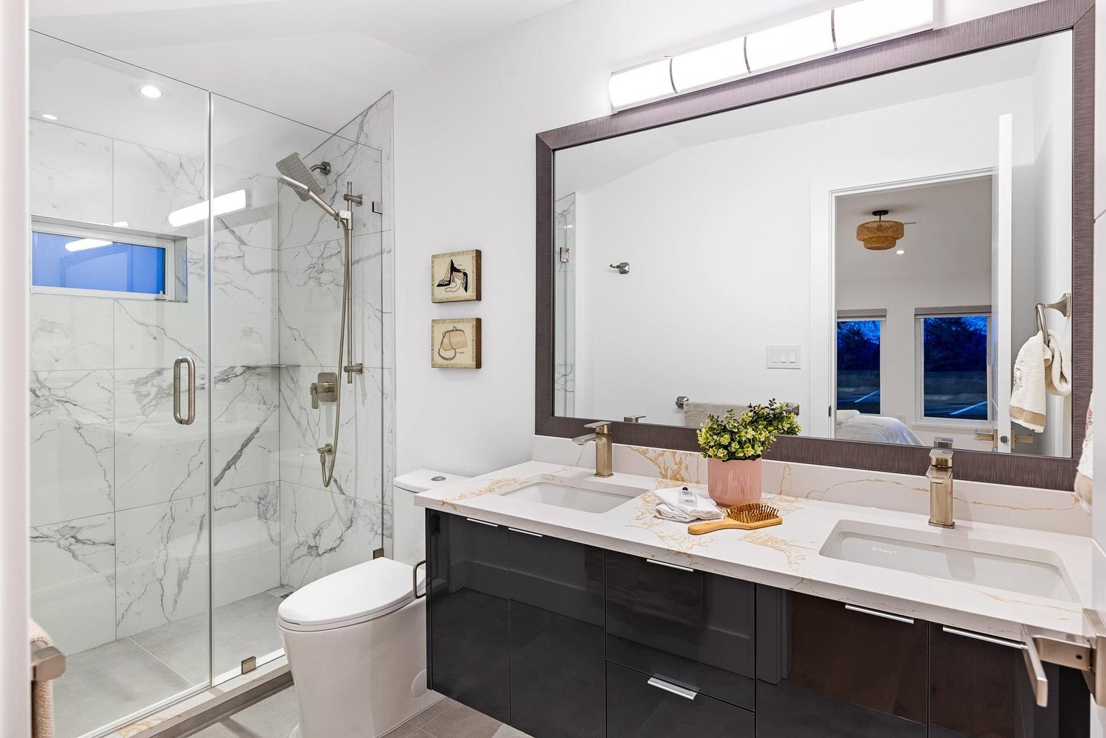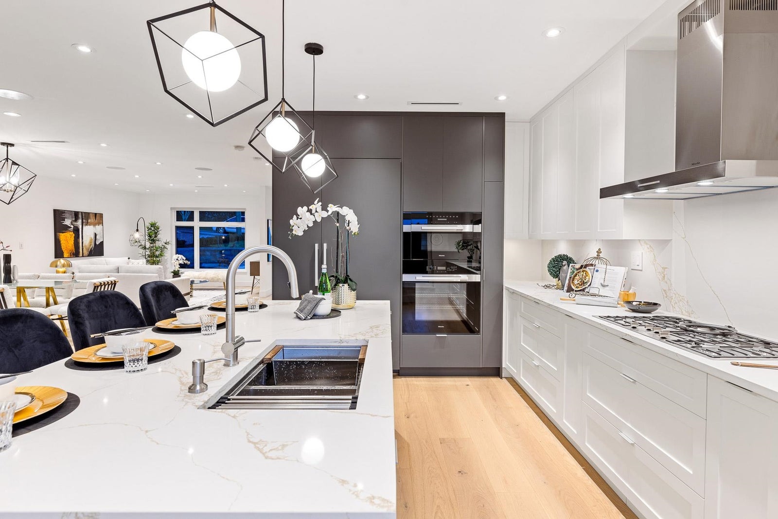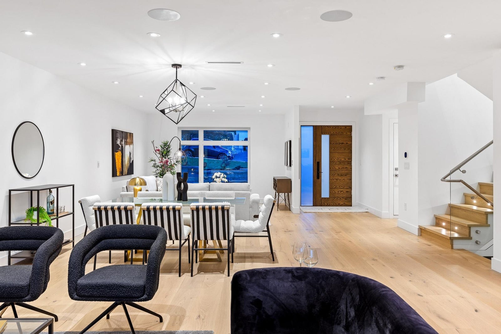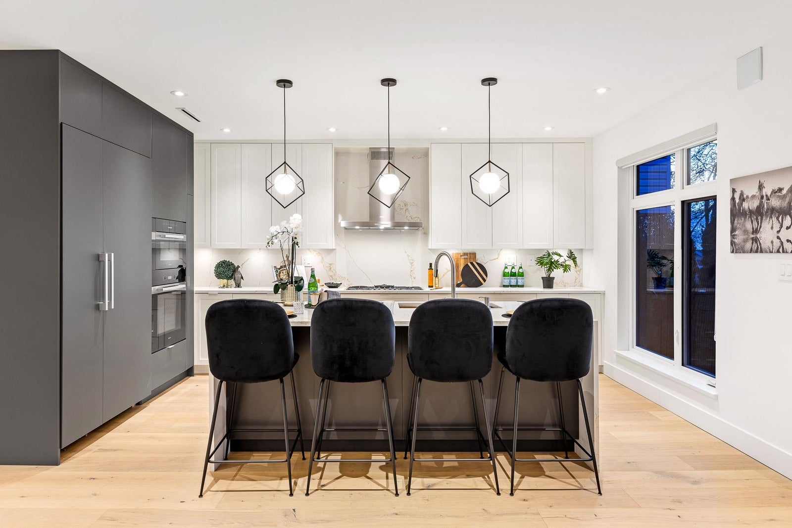 Outstanding BRAND NEW 5-bedroom residence with a 40’ frontage, quietly nestled in one of the absolute amazing family friendly neighbourhoods in North Vancouver! Crafted by “Morez Design” the thoughtfully designed main floor boasts a spacious open concept with a large covered patio facing your beautiful flat green backyard. A beautiful chef’s kitchen featuring Miele appliances awaits. Upstairs, enjoy 3 bedrooms, including a spacious primary bedroom with city and water VIEWS. The lower level showcases a 2-bedroom LEGAL suite, a media room with a wet bar, and a full bathroom. High-end finishes, in-floor radiant heat, A/C, and solar readiness complete this home. Braemar Elementary & Carson Graham Secondary Schools are conveniently close.
