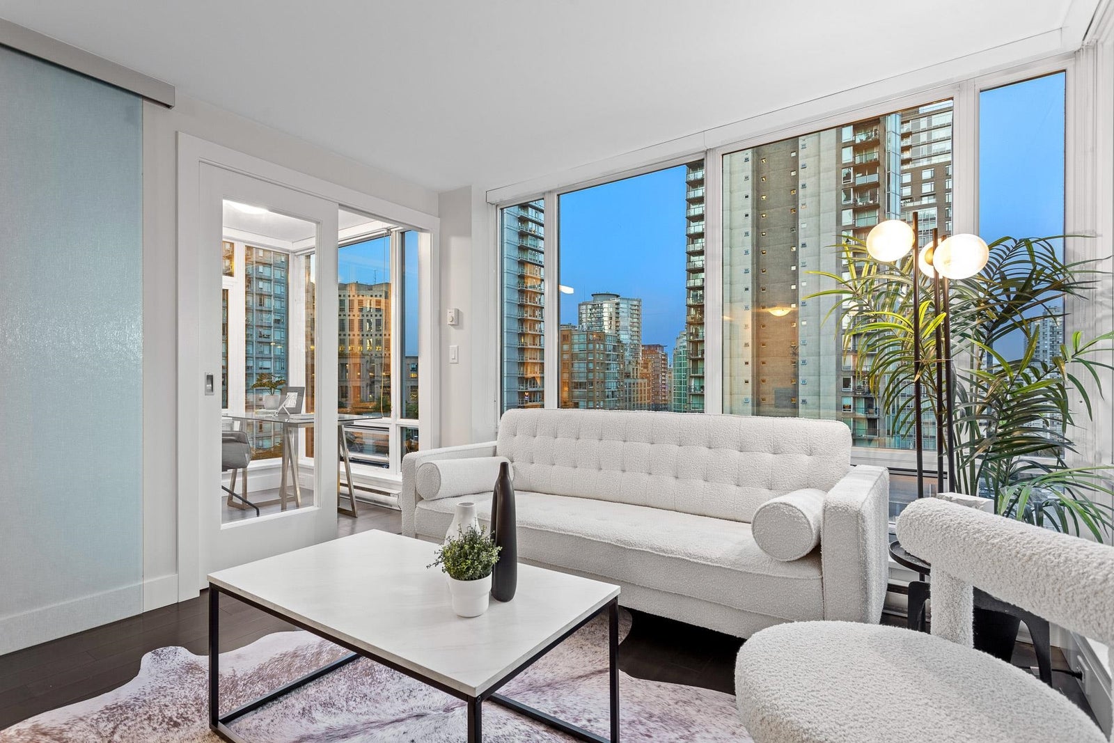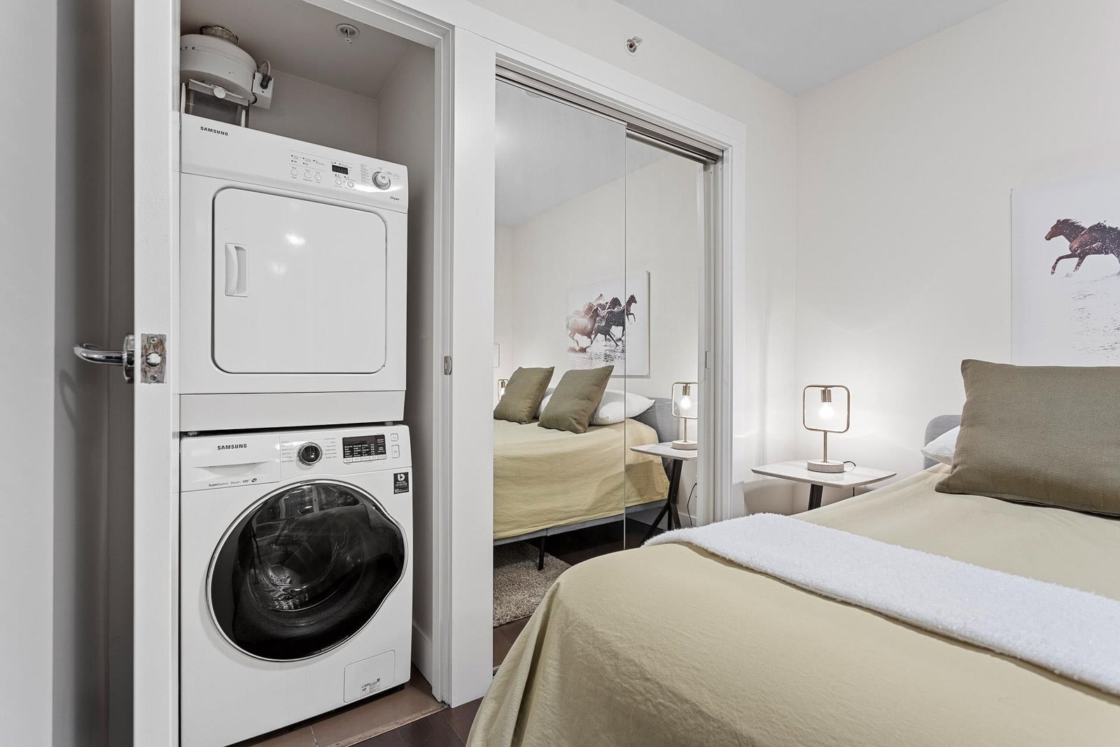 Bright corner unit in the award-winning Dolce at Symphony Place, a prestigious building known for its exceptional design and luxury. Located on the 10th floor, this spacious 1-bedroom, 1-bathroom + office and den unit, features an open-concept layout with floor-to-ceiling windows that offer stunning city views. The modern kitchen boasts quartz countertops and stainless steel appliances. This perfectly situated unit offers unmatched convenience, with parks, shopping, restaurants, and entertainment options just steps away. World-class amenities include a concierge, indoor and outdoor lounges, a gym, a hot tub, a steam room, and an outdoor playground area. Additionally, this unit includes 1 parking spot and 1 storage unit, ensuring both comfort and convenience.