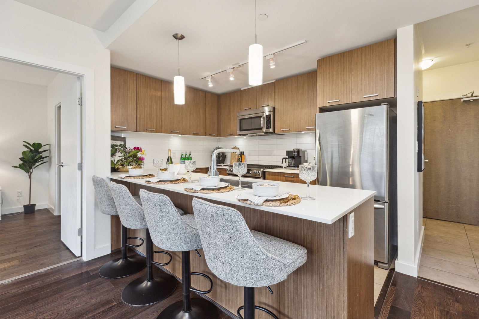 Welcome to this modern 3-bed and 2-bath residence at the Drive built by the award-winning Onni Group. This home boasts an open-concept plan with natural light, stainless steel appliances and two balconies. The Primary bedroom has a spacious walk-in closet, a double sink ensuite with a separate soaker tub and a modern glass door stand-up shower. This unit comes with 2 parking stalls and a storage locker. Nestled on a quiet cul-de-sac and only minutes away from Marine Drive, Lions Gate and shopping.