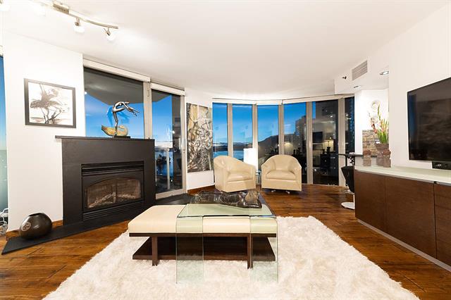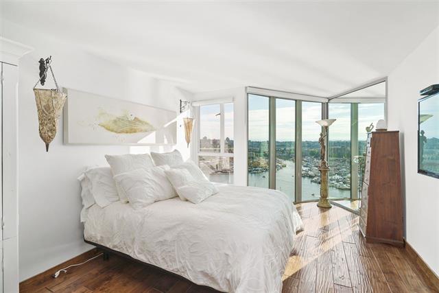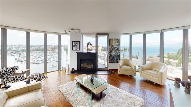 An absolute MUST SEE! Unobstructed, sunrise-to-sunset, panoramic views of False Creek, multiple marinas, English Bay & West Vancouver mountains... from every room! This luxurious 2 bed + 2 bath, waterfront condo offers a unique layout designed to maximize the extraordinary views! Featuring a spacious living room with gas f/p, generous kitchen & dining areas, a king-sized master bedroom w/ spa-like ensuite, a 2nd bedroom w/ contemporary murphy bed, A/C, imported h/w flooring, motorized roller shades, and a balcony that takes your breath away as it floats you over the marina! Steps from the seawall, Sunset Beach, and the best of Yaletown, the resort-like 1000 Beach offers 24 hr concierge and extravagant health club facilities. Bonus: 2 parking stalls and a storage locker included!