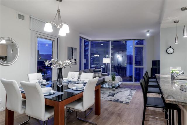 Welcome home to "The Ritz" built by Pinnacle in the prestigious Coal Harbour. Experience the luxurious living at a 1400 sqft 3 Bedroom, 3 Bathroom and Den, plus office unit. This is a AIR-CONDITIONED bright corner unit with oversized windows, efficient floor plan and over height ceiling. Plenty of natural light and air condition make your beautiful suit comforter all year round. Unit 1005 has beautiful views of water, North Shore mountain, Stanley Park and comes with 2 S.byS. Parking and one locker. The gourmet kitchen includes Kitchen Aid S/S appliances and granite countertops. " The Ritz" includes 24 hour concierge, indoor pool, gym, hot tub, sauna, steam room, party room, private courtyard and more.